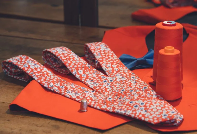 Nous fabriquons vos cravates, lavallières, nœuds papillon, pochettes, ceintures, gilets, boutons de manchettes ou toutes autres envies textiles pour votre événement, vos invités, votre cortège.