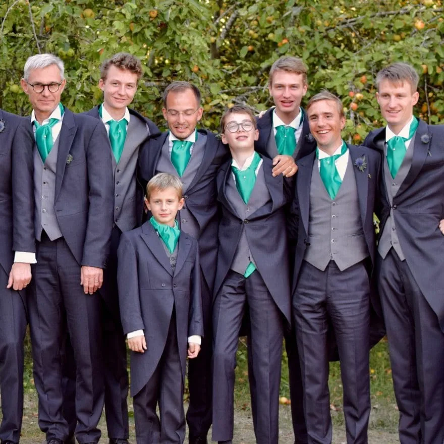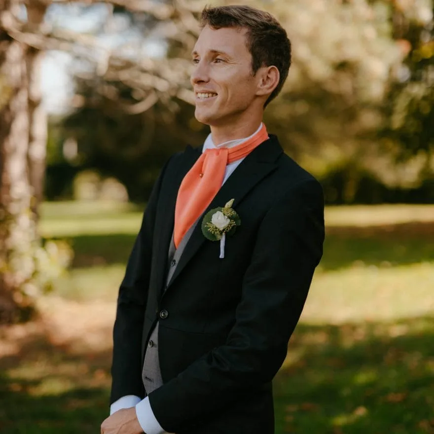 Merci aussi pour votre gentillesse et votre flexibilité avec tous nos allers-retours, les costumes des pères et frères étaient superbes et j'étais ravi moi aussi de ma lavallière !